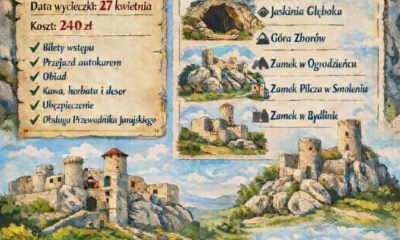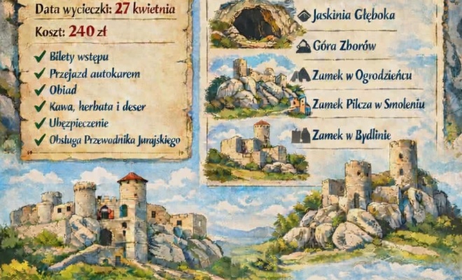 Miejski Ośrodek Kultury w Kłobucku zaprasza seniorów na wyjątkową wycieczkę po malowniczych zakątkach Jury Krakowsko-Częstochowskiej. Wyprawa odbędzie się 27 kwietnia 2026 roku, a punkt...