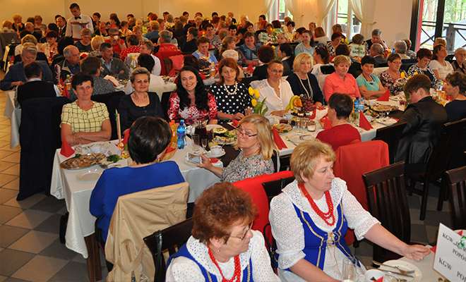 W powiecie mamy tak wiele aktywnie działających kół gospodyń wiejskich oraz tak wiele ich członkiń, że do wspólnego świętowania jubileuszu 150-lecia organizacji trzeba było zaprosić tylko kilkuosobowe delegacje każdego z nich. Większość na to zaproszenie przybyła. Uroczystość urządzono w sali balowej jednego z ośrodków wypoczynkowych nad Liswartą w Zawadach. To było niezbędne tak ze względów logistycznych, jak i z powodu pogody – która, grożąc deszczem, wykluczała przeniesienie świętowania w plener. Duszą rocznicowej imprezy, jej prowadzącą i główną organizatorką (wraz z kołem „Jutrzenka” z Popowa) była Teresa Żurawska – współorganizatorka wielu podobnych przedsięwzięć na terenie gminy i okolicy, zwłaszcza wyjątkowych w swej atmosferze biesiad. Prowadząca przypomniała pokrótce dzieje organizowania się gospodyń – począwszy od pierwszej tego typu organizacji w 1866 roku na Pomorzu. O ważnej społecznej roli kół gospodyń na naszym terenie – gdzie jest ich znacznie więcej niż średnio w kraju – mówił jako gość jubileuszu starosta Henryk Kiepura, a wtórował mu wójt goszczącej imprezę gminy, Bolesław Świtała. Przewodnicząca Żurawska nie omieszkała przygotować wraz ze swym kołem gospodyń upominków dla zaproszonych koleżanek z wsi powiatu kłobuckiego. Były też listy gratulacyjne przygotowane przez „Jutrzenkę”.