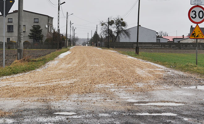 – Kierowcy jeżdżą drogą dość szybko, a kamienie lądują a to na naszych oknach, a to na posesjach – tłumaczą.