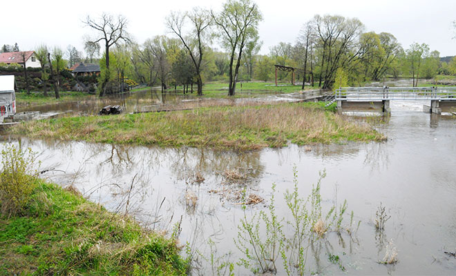 Długotrwałe opady, choć niezbyt intensywne, spowodowały już znaczny wzrost poziomu wody w rzekach