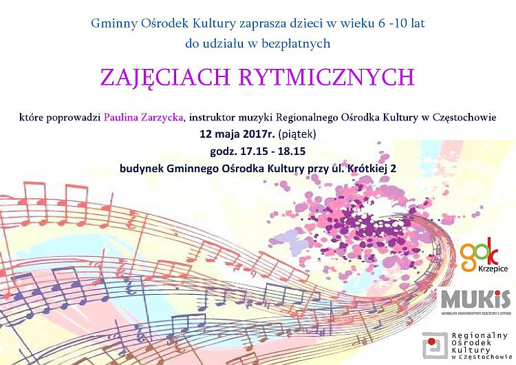 ZAJĘCIA RYTMICZNE DLA DZIECI – Gminny Ośrodek Kultury w Krzepicach