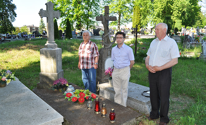 Mirek, a także Łukasz Kiedrzyn i radny Tadeusz Izydorczyk, na uprzątniętej płycie nagrobka ustawili znicze. Wspólnie wspomnieli też opisane i znane z opowieści dzieje sprzed stu lat.