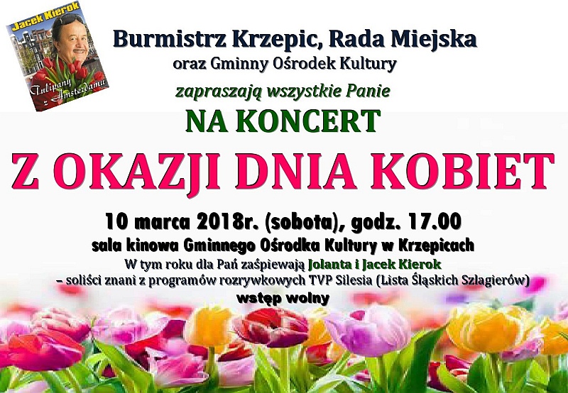 Krzepice Koncert z okazji Dnia Kobiet – Krzepice Koncert z okazji Dnia Kobiet – Krzepice Ewa Chojnacka 15 lutego 2018 Serdecznie zapraszamy wszystkie Panie na koncert z okazji Dnia Kobiet, który odbędzie się 10 marca o godzinie 17.00 w sali kinowej Gminnego Ośrodka Kultury w Krzepicach TagiGminny Ośrodek Kultury w KrzepicachJolanta i Jacek KierokKoncert z okazji Dnia Kobiet - KrzepicePopularne Kliknij aby dodać komentarz Dodaj komentarz Anuluj pisanie odpowiedziTwój adres e-mail nie zostanie opublikowany. Wymagane pola są oznaczone *Komentarz * Nazwa E-mail Witryna internetowa Zapamiętaj moje dane w tej przeglądarce podczas pisania kolejnych komentarzy. Krzepice 15 lutego 2018 Ewa Chojnacka Masz ciekawy temat? Zadzwoń! Tel. 784 527 273 TagiGminny Ośrodek Kultury w KrzepicachJolanta i Jacek KierokKoncert z okazji Dnia Kobiet - KrzepicePopularne