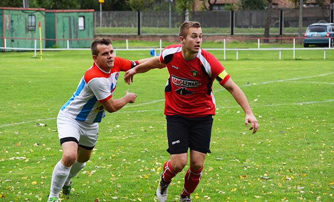 Piłkarska legenda Płomienia Przystajń, Tomasz Pasieka (obecnie KS Panki) – z prawej.