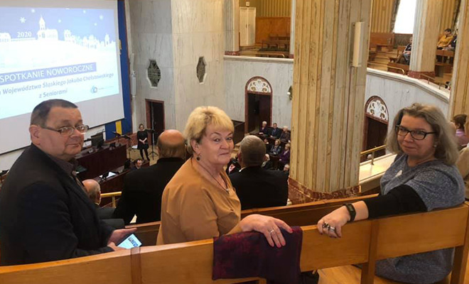 W styczniowym spotkaniu seniorów w Urzędzie Marszałkowskim w Katowicach wzięli udział członkowie Stowarzyszenia Akademii Trzeciego Wieku z Kłobucka. W sali sejmiku śląskiego połączono tego dnia ceremonię składania życzeń noworocznych z odrobiną sztuki estradowej w wykonaniu zespołu Happy Big Band oraz z poczęstunkiem w kuluarach. Jak się dowiadujemy, była też okazja do wielu ważnych rozmów w przyjaznej atmosferze. I kłobuckie stowarzyszenie nawiązało też sporo kontaktów z innymi organizacjami działającymi na rzecz seniorów i seniorów skupiających w swych szeregach.