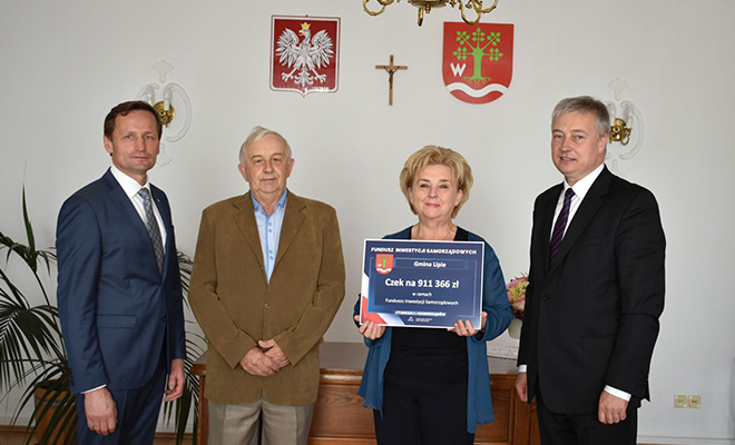 W piątek , tuż przed wyborami, na ręce wójt Bożeny Wie – loch przekazano czek na kwotę 911 366 zł. To środki dla gminy Lipie, przysługujące w ramach rządowej tak zwanej Tarczy dla samorządów. Z założenia są to środki przeznaczone na działania inwestycyjne. Trafiają do gmin i powiatów w kwotach zależnych od relacji wydatków majątkowych oraz zamożności gmin i powiatów. Dofinansowanie ma związek z działaniami antykryzysowymi po szczycie epidemii COVID-19. Jego źródłem jest Fundusz COVID-19, a wsparcie jest udzielane samorządom bezzwrotnie. Na wnioski składane przez samorządy. (jar)