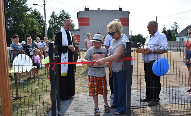 Plac otwarto uroczyście, choć wydarzenie w obecnych warunkach musiało mieć ograniczoną skalę. Gospodarzy reprezentowali tu sołtys Jacek Nicpoń i radna Alicja Podgórska. Straż reprezentował m.in. komendant Robert Sitek. Gminę – osobiście wójt Bożena Wieloch. Plac zabaw poświęcił ksiądz proboszcz Henryk Dusza, kustosz sanktuarium w Dankowie. A w przecięciu wstęgi miał udział też ktoś z tych, którzy z placu będą korzystać najbardziej. Dzieci. (jar)