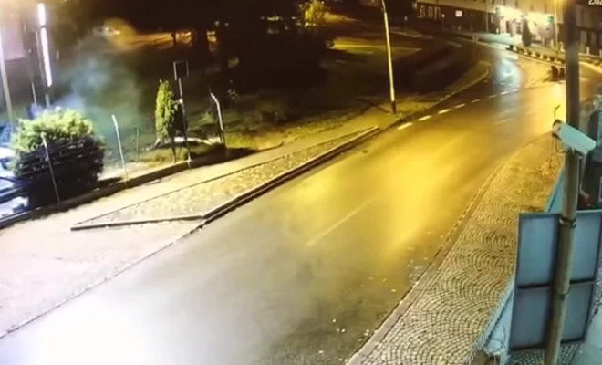 Do sieci trafiło nagranie z miejsca wypadku – widać, jak auto wypada z zakrętu, zjeżdża na chodnik i pas zieleni, po czym uderza w jednego z dwóch mężczyzn.