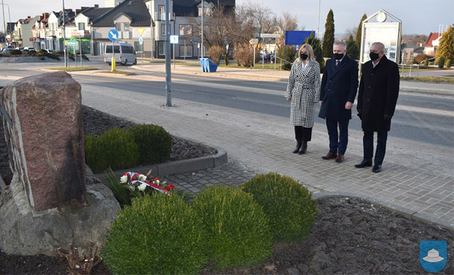 Wiązankę kwiatów pod pomnikiem Władysława Sebyły w Kłobucku w poprzedni piątek złożył burmistrz Jerzy Zakrzewski w asyście sekretarz Sylwii Piątkowskiej i przewodniczącego rady miejskiej Janusza Solucha.