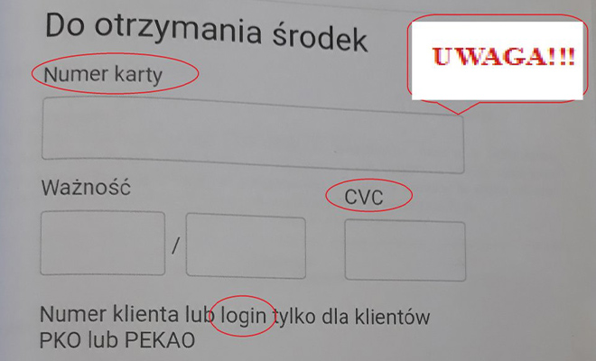 – Oszuści tworzą fałszywe strony imitujące wyglądem witrynę płatności jednego z internetowych serwisów ogłoszeniowych. Aby sfinalizować transakcję, wiadomości z linkami przekierowującymi na fałszywe strony są wysyłane przez komunikatory internetowe. Po wejściu na fałszywą stronę użytkownikowi pokazuje się proces zamówienia przesyłki. Aby opłacić usługę kurierską, mamy podać różne dane osobowe, w tym numer karty płatniczej i kod zabezpieczeń. Kolejny krok to przekierowanie do aplikacji bankowej – i tak ofiary tracą ze swojego konta oszczędności – informują policjanci. Ku przestrodze publikujemy wzory formularzy, którymi często posługują się internetowi oszuści. (as)