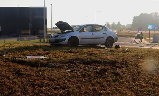 To stało się we wtorek tuż przed piątą rano. Jak zgłoszono policji, na rondzie na drodze krajowej w Libidzy dachował osobowy renault.