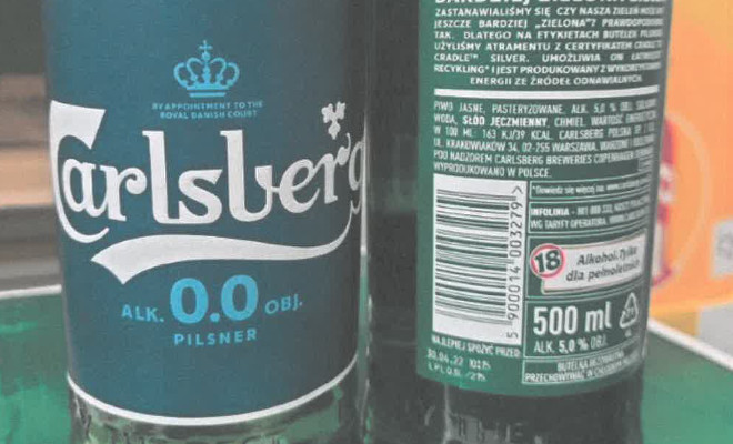 Wróćmy do piwa źle oznakowanego. Pomyłka dotyczy carlsberga w półlitrowych butelkach z partii LPL03L/215 o dacie ważności 30.04.22, a wskazane godziny na butelce to od 10:05 do 10:27. Błędnie oznakowany towar otrzymała firma Jeronimo Martins Polska SA, która prowadzi popularne sklepy pod marką Biedronka. Piwo błędnie oznakowane można zwrócić. Jeśli ktoś chce. Można też wymienić na piwo bezalkoholowe. Producent podaje szczegóły na swojej stronie. Najważniejsze jest jednak wiedzieć, że w butelce ma się piwo z alkoholem, a nie bezalkoholowe. Poza tym – z produktem wszystko jest w porządku. Więc można go też po prostu wykorzystać jak zwykłe piwo alkoholowe. (jar)