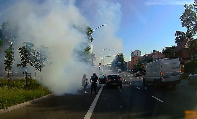 Sytuacja dość niecodzienna. Wydarzyła się w poprzedni wtorek w Katowicach. Jedną z głównych ulic jechała autem kobieta. Pech, że coś się z tym autem nagle stało, gdy akurat trzeba się było zatrzymać na światłach. Silnik wymknął się spod kontroli, nabrał wysokich obrotów, a z rury wydechowej zaczął walić dym. Chmura zakryła drogę. Kobieta próbowała wyłączyć silnik – wyjęła kluczyk ze stacyjki. Ale to nic nie dało.