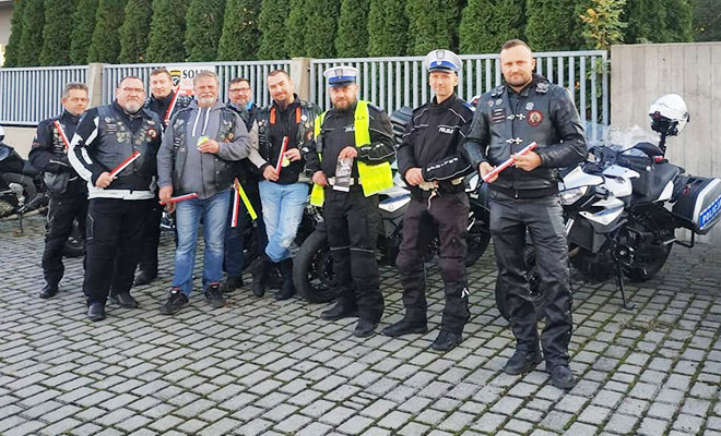 W ramach tej międzynarodowej inicjatywy, kłobucka drogówka przeprowadziła wspólne działania z Klubem Motocyklowym SKL Dragon. Na drodze krajowej nr 43 w Waleńczowie, mundurowi zatrzymywali przejeżdżające samochody, po czym wspólnie z motocyklistami zwracali uwagę innym kierowcom na grupę niechronionych uczestników ruchu drogowego, do której zaliczamy pieszych oraz miłośników jednośladów – zarówno tych napędzanych siłą mięśni jak i silnikiem mechanicznym. Podczas działań policjanci przypominali kierowcom, że dla poprawy wspólnego bezpieczeństwa, każdy uczestnik ruchu drogowego musi zachowywać szczególną ostrożność, czujność oraz kulturę. Ponadto, kierowcy otrzymywali profilaktyczne ulotki oraz odblaski, które na pewno poprawią bezpieczeństwo pieszych podczas jesiennych spacerów.
