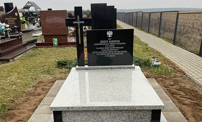 Przede wszystkim po latach przywrócono tej ofierze wojennej zbrodni jej imię. I godność. Józef Kiedos, zamordowany 3 września 1939 roku na polu pod Wapiennikiem, miał 27 marca 2022 roku godny pogrzeb, który prowadził sam ksiądz biskup i w którym uczestniczył tłum mieszkańców. Po latach, za tę krzywdę i za zapomnienie, doczekał się choć tego wyróżnienia. To był też symboliczny akt oddania godności wszystkim ofiarom tamtych tragicznych czasów.