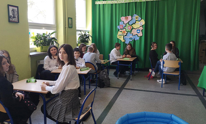 Jak wyglądał konkurs? W części przyrodniczej uczniowie rozwiązywali test z wiedzy oraz krzyżówkę, oznaczali też na mapie rezerwaty przyrody, rozpoznawali rośliny i zwierzęta ściśle chronione, podpisywali na mapie rzeki, a także oczyszczali zbiornik wodny ze śmieci.