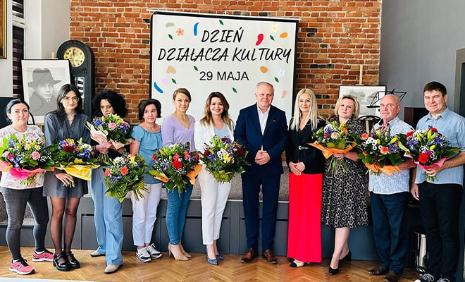 Z tej okazji władze miasta odwiedziły Miejski Ośrodek Kultury im. Wł. Sebyły w Kłobucku z życzeniami