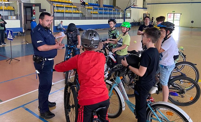 Przez ostatnie tygodnie policjanci z drogówki odwiedzali dzieci ze szkół podstawowych z powiatu kłobuckiego. Spotkania nie były przypadkowe, gdyż pod okiem mundurowych łącznie ponad 150 uczniów z czterech szkół przystąpiło do zorganizowanego przez dyrektorów szkół egzaminów na kartę rowerową. Wszyscy uczniowie wykazali się szeroką wiedzą teoretyczną oraz w praktyce zaprezentowali technikę bezpiecznej jazdy na rowerze, dzięki czemu zdobyli pierwsze „prawo jazdy”. W piątek 9 czerwca w Szkole Podstawowej im. Adama Mickiewicza, we wtorek 13 czerwca w Szkole Podstawowej numer 3 im. Jana Pawła II w Kłobucku i w Zespole Szkolno-Przedszkolnym w Ostrowach nad Okszą oraz 20 czerwca w Zespole Szkolno-Przedszkolnym w Miedźnie dyrekcje szkół wspólnie z mundurowymi z kłobuckiej drogówki, zorganizowały uczniom spotkania profilaktyczne, na których młodzi ludzie mogli sprawdzić swoją wiedzę teoretyczną i praktyczną dotyczącą bezpiecznej jazdy na rowerze. W trakcie spotkania mundurowi zwracali uwagę nie tylko na przestrzeganie przepisów drogowych, ale również na prawidłowe wyposażenie rowerów i jazdę w kaskach ochronnych. Młodzi rowerzyści wcześniej brali udział w zajęciach teoretycznych przeprowadzonych przez nauczycieli, a następnie przystąpili do egzaminów teoretycznych, wykazując się wiedzą z zakresu zasad ruchu drogowego. Egzaminy praktyczne z techniki jazdy jednośladem młodzi adepci bezpiecznej jazdy na rowerze zdawali pod czujnym okiem mundurowych. Te sprawdziany umiejętności polegały na prawidłowym poruszaniu się po mobilnym miasteczku ruchu drogowego. Do egzaminów przystąpiło łącznie ponad 150 uczniów z czterech szkół z powiatu kłobuckiego i wszyscy uzyskali upragnioną kartę rowerową.