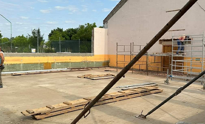Istniejące trybuny wraz z zadaszeniem zostały już rozebrane. Podobnie dzieje się z halą sportową, na której już niebawem będzie nowa elewacja oraz dach, stolarka okienna i drzwiowa oraz podłoga sportowa.