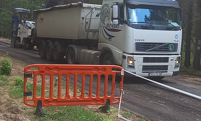 Z drogi zbierany jest stary asfalt – fatalnie wyboisty i dziurawy. To realnie był jeden z najgorszych odcinków asfaltowych dróg powiatowych na naszym terenie. Wiele razy pisaliśmy, że potrzebę remontu tej drogi podnoszono niemal co trochę. Działo się to na sesjach rady powiatu, gdzie temat przypominała wspomniana radna Żurawska, działo się też na sesjach Rady Gminy Popów, gdzie głos zabierali inni lokalni samorządowcy. Podnoszono, że to wstyd, by po takiej drodze jeździć do ośrodka, w którym szkoli się służbę więzienną – do ośrodka o randze krajowej. Okazało się, że dopiero rządowe dofinansowanie popchnęło te sprawę do przodu. Satysfakcja tych, którzy o nią zabiegali, nie dziwi.