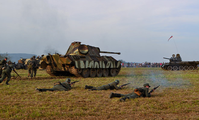 W minioną sobotę na Górze Opatowskiej ludzi były znów tak wielu, jak na wielkomiejskim placu podczas ciekawej imprezy. Nic dziwnego – odbywała się tu ponownie widowiskowa rekonstrukcja historyczna. Widowisko „A więc wojna!” zorganizowano już po raz dziesiąty. Tym razem tematem były walki pod Budziszynem w 1945 roku. A na polu bitwy na Górze Opatowskiej prawdziwy pojedynek stoczyły dwa czołgi. imprezę wsparła fundcja Lar.Go