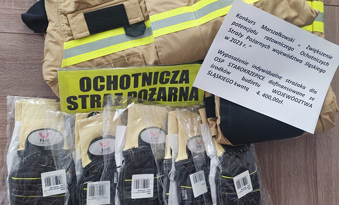Gmina złożyła w sierpniu wniosek o przyznanie pomocy finansowej w ramach Konkursu Marszałkowskiego pod tytułem: „Zwiększenie potencjału ratowniczego Ochotniczych Straży Pożarnych województwa śląskiego w 2023 r.”. Niezależnie od długiej nazwy, środki pozyskane w ten sposób są dość skromne, ale i tak umożliwiają pożyteczne ich wykorzystanie na rzecz strażaków ochotników. Dzięki otrzymanej dotacji w kwocie 4 tysięcy złotych zostało zakupione wyposażenie indywidualne strażaka dla OSP w Starokrzepicach. W jego skład wchodzi dwuczęściowe 0ubranie specjalne i pięć par rękawic strażackich.