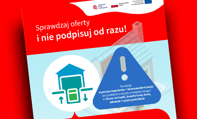 Chodzi o to, że nierzetelni wykonawcy oferują urządzenia grzewcze do nieocieplonych domów. Rzekomo jest to rozwiązanie dla wnioskodawców i beneficjentów programu „Czyste Powietrze”. Do tego oferta często powiązana jest z pełnomocnictwem w nieuczciwych celach. Nie należy podejmować pochopnych decyzji, dawać się skusić rzekomą darmową ofertą – nie można dać się oszukać.