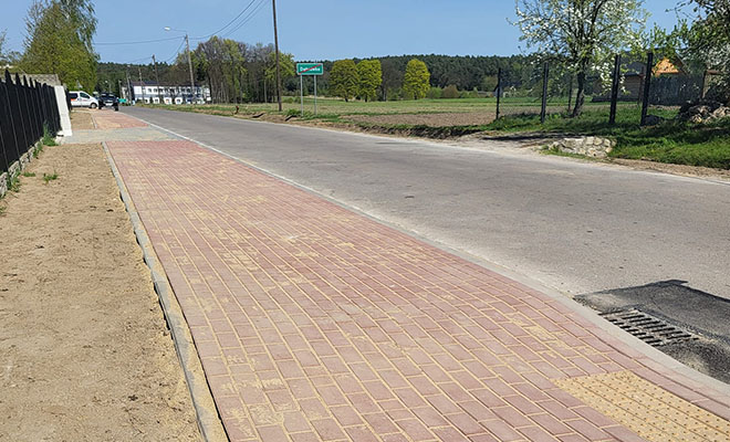 Właśnie zakończono budowę chodnika w Dąbrówce. Budowa ta zrealizowana została w ciągu drogi powiatowej nr 2013S. W ramach zadania wykonano odwodnienie istniejącej jezdni, modernizację rowów oraz budowę chodnika i zjazdów z kostki brukowej. Teraz jest tu znacznie bezpieczniej – zwłaszcza dla pieszych. Chodzić po chodniku w takim stanie jest też po prostu wygodnie.