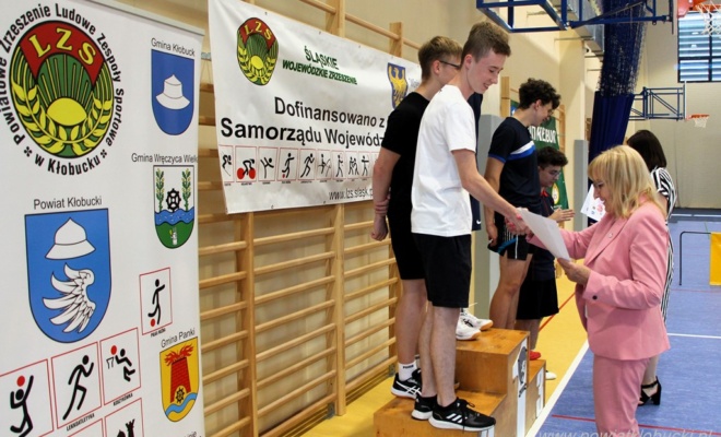 Pucharami i dyplomami za miejsca I-III oraz upominkami wszystkich uczestników dekorowali: starosta kłobucki Dariusz Pilśniak, wicestarosta Karol Wers, sekretarz powiatu Sylwia Tronina, skarbnik powiatu Katarzyna Kurowska, członkowie zarządu Zdzisława Kall i Małgorzata Puchała-Augustyn oraz skarbnik Zrzeszenia LZS Stanisław Wrzesiński.