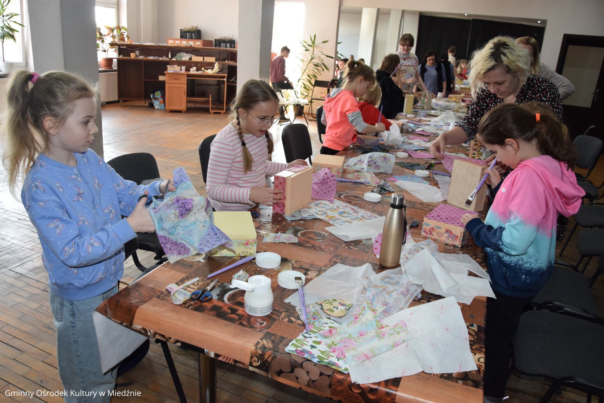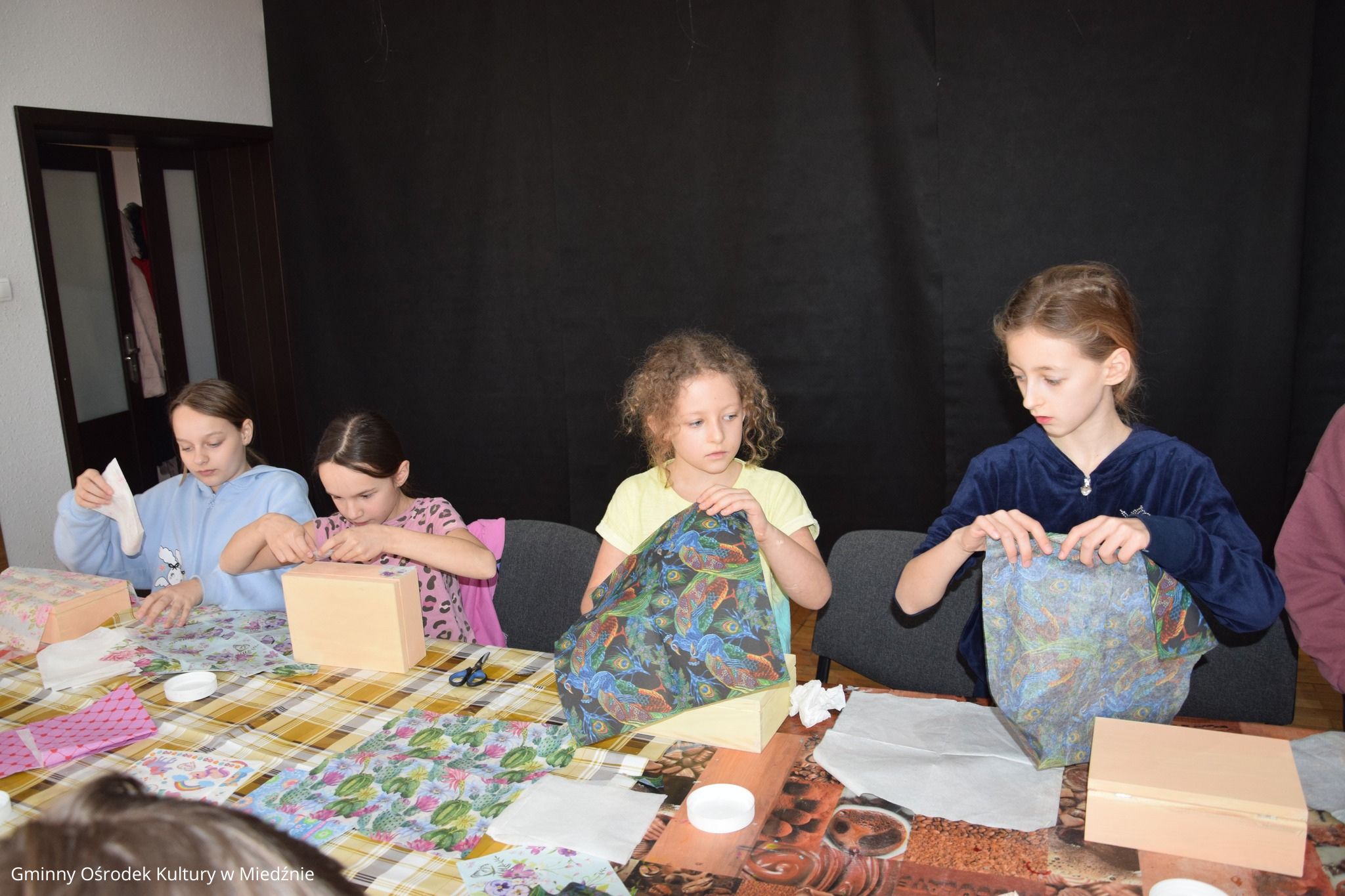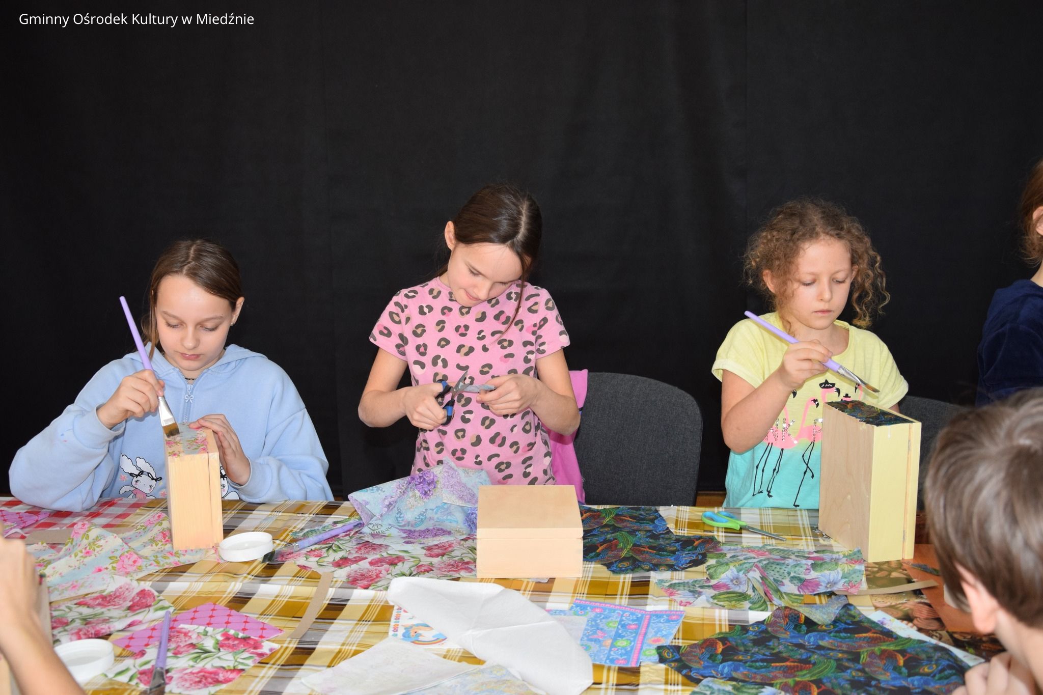 Ferie to czas odpoczynku i zabawy, ale także doskonała okazja do rozwijania pasji i kreatywności. Właśnie z tego założenia wyszedł Gminny Ośrodek Kultury w Miedźnie, organizując warsztaty artystyczne, które rozpoczęły tegoroczne „Ferie z GOK”. Choć nazwa „decoupage” może brzmieć nieco obco, dla uczestników poniedziałkowych warsztatów była to doskonale znana technika, która wprowadziła ich w świat twórczości.