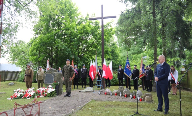 Po nabożeństwie uczestnicy – w tym poczty sztandarowe, orkiestra dęta z Kamyka, delegacje, zaproszeni goście i mieszkańcy – wspólnie przeszli w marszu pod obelisk upamiętniający ofiary egzekucji. Tam odbyła się oficjalna część uroczystości. Odczytano Apel Poległych, a delegacje złożyły wiązanki kwiatów. Symboliczny hołd oddali również Burmistrz Kłobucka Jerzy Zakrzewski, sekretarz gminy oraz radni Rady Miejskiej w Kłobucku.