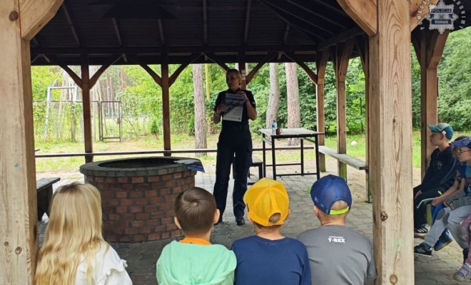Letni wypoczynek w Ośrodku Harcerskim „Zawady” nabrał ostatnio wyjątkowego charakteru. Dzieci biorące udział w półkoloniach miały okazję spotkać się z policjantkami z kłobuckiej komendy, które nie tylko przypomniały im najważniejsze zasady bezpieczeństwa, ale także pokazały, jak wygląda ich codzienna praca.