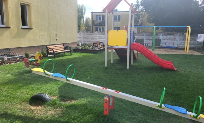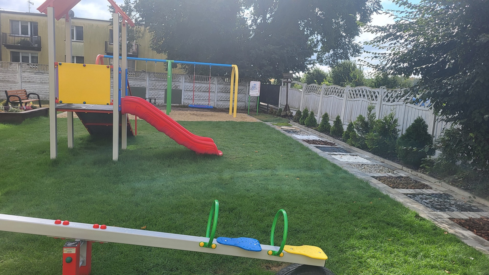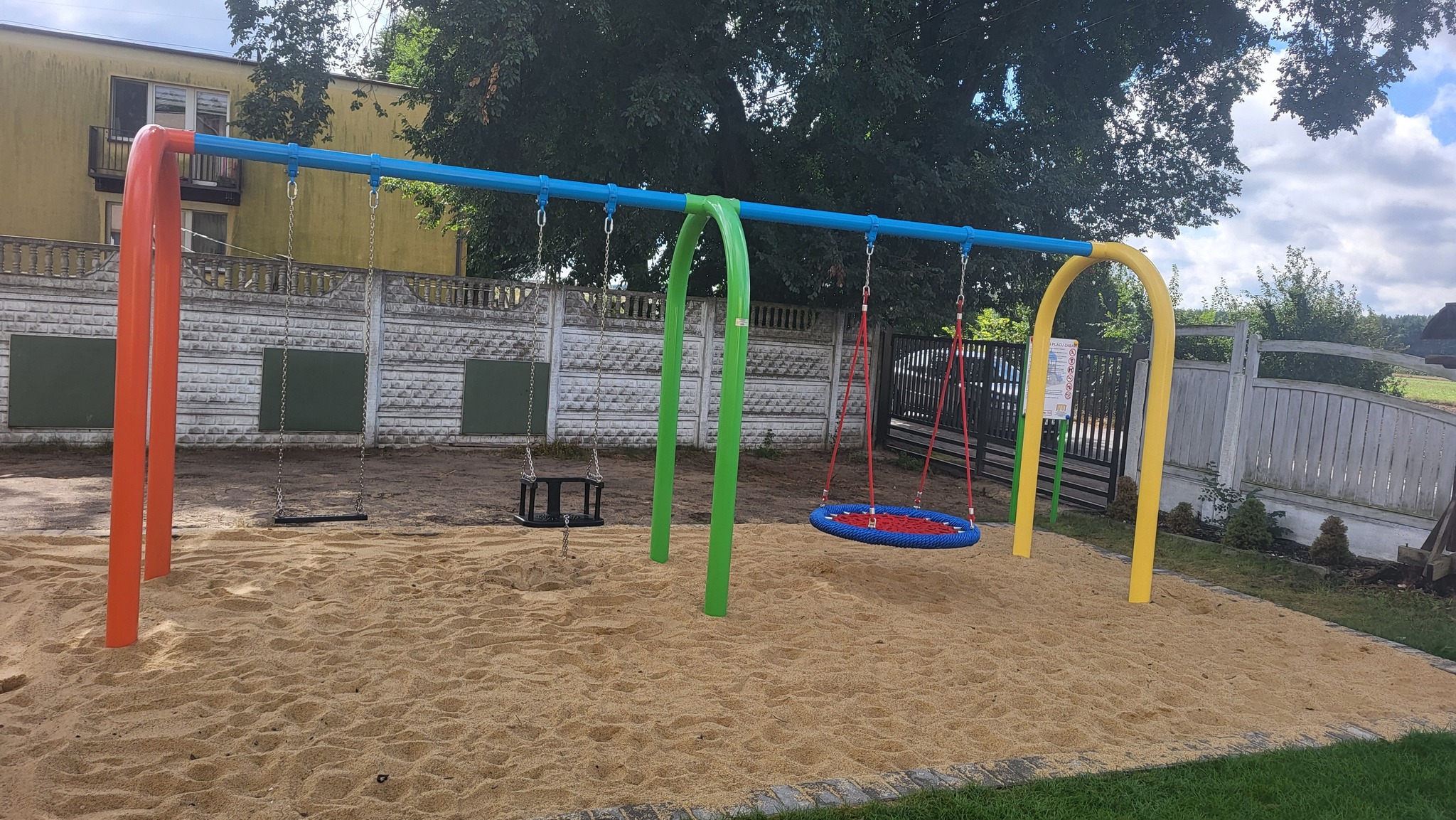 Dzięki realizacji inwestycji dzieci mogą korzystać z nowych huśtawek, w tym huśtawki wagowej i „bocianiego gniazda”, kolorowych bujaczków oraz zestawu zabawowego ze zjeżdżalnią. Przestrzeń uzupełniają nowe ławki i kosze na śmieci, co podnosi komfort i bezpieczeństwo użytkowników.