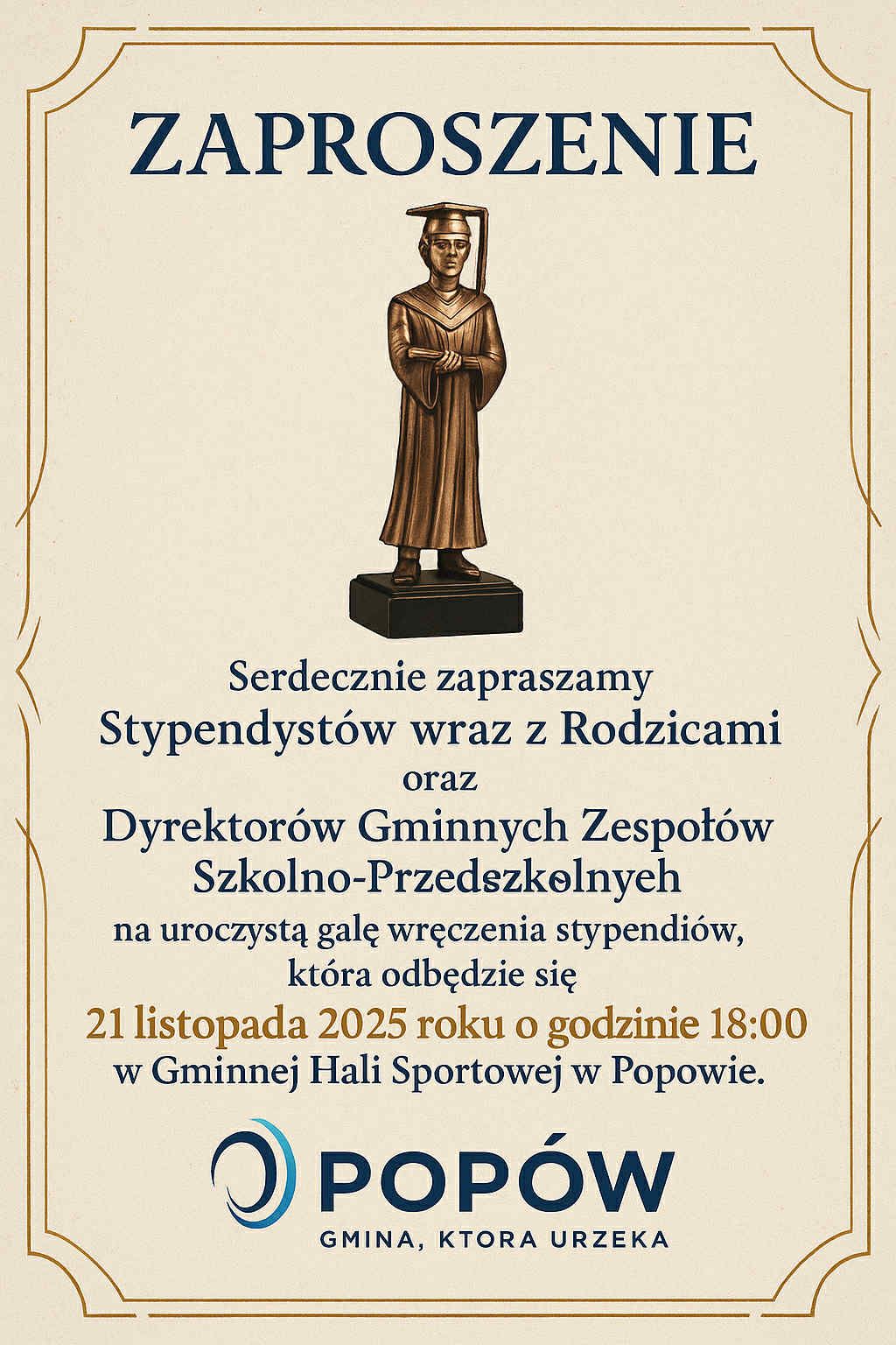 Gmina Popów przygotowuje się do wyjątkowego wydarzenia, które ma wyróżnić uczniów osiągających wybitne wyniki w nauce i aktywności społecznej. 21 listopada 2025 roku o godzinie 18:00 w Gminnej Hali Sportowej w Popowie odbędzie się uroczysta gala wręczenia stypendiów, na którą zaproszeni są stypendyści wraz z rodzicami oraz dyrektorzy gminnych zespołów szkolno-przedszkolnych.