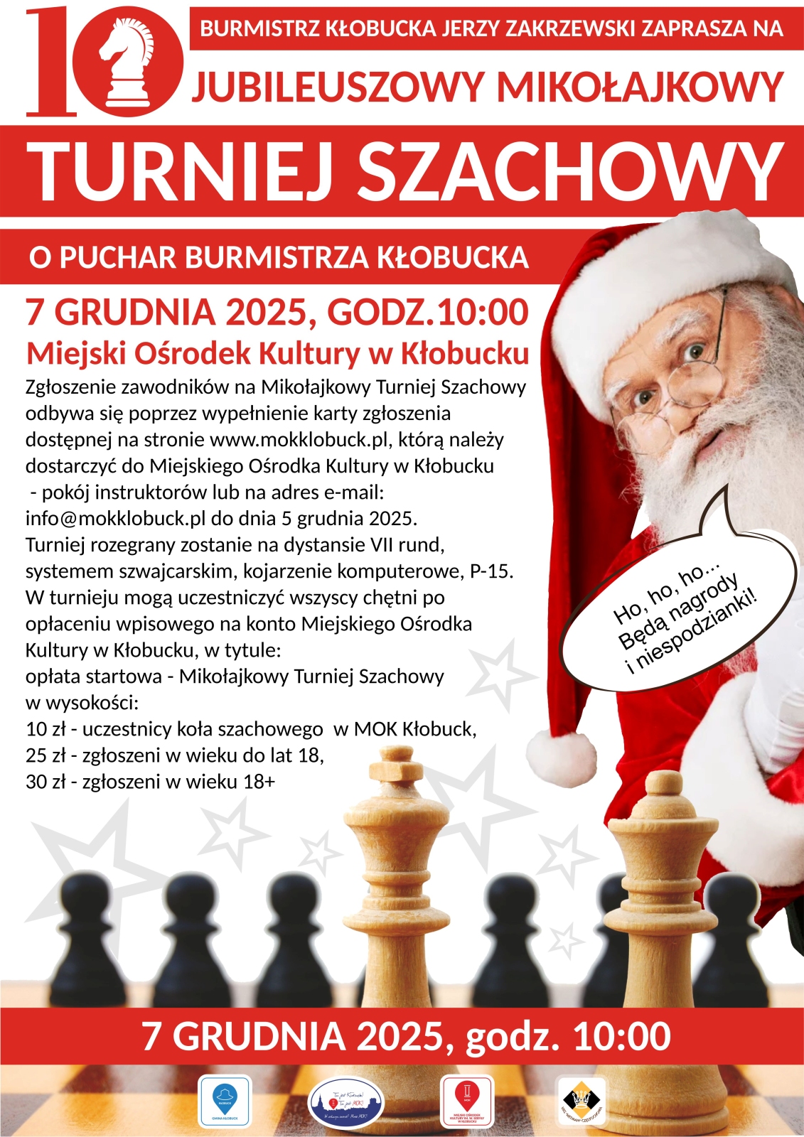 Kłobuck zaprasza na 10. Jubileuszowy Mikołajkowy Turniej Szachowy o Puchar Burmistrza