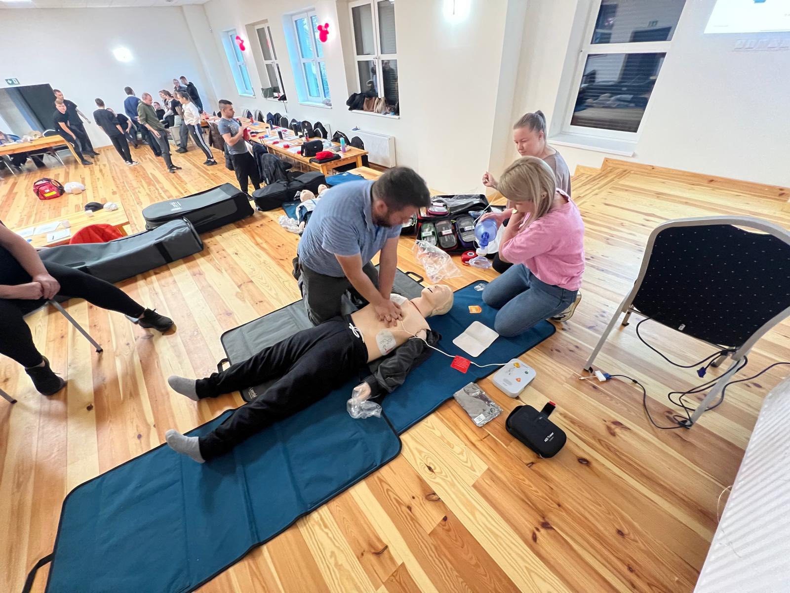 Podczas zajęć uczestnicy uczyli się m.in. prowadzenia resuscytacji krążeniowo-oddechowej u dorosłych i dzieci, obsługi defibrylatora AED, tamowania obfitych krwotoków i prawidłowego stosowania opasek uciskowych, unieruchamiania urazów i złamań, reagowania w przypadku oparzeń, nagłych zachorowań czy drgawek, a także ewakuacji poszkodowanych i współpracy w zespole ratowniczym podczas realistycznych ćwiczeń.