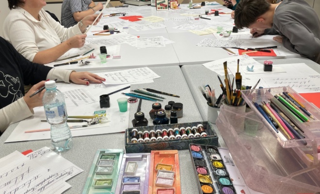 Podczas warsztatów panowała wyjątkowa atmosfera skupienia i kreatywności. Każdy uczestnik miał okazję eksperymentować z różnymi technikami pisma, a powstające prace pokazywały, że litery potrafią opowiadać historie równie barwnie jak obrazy. Spotkanie było nie tylko okazją do nauki nowych umiejętności, ale również przestrzenią do inspirujących rozmów i wymiany doświadczeń między uczestnikami.