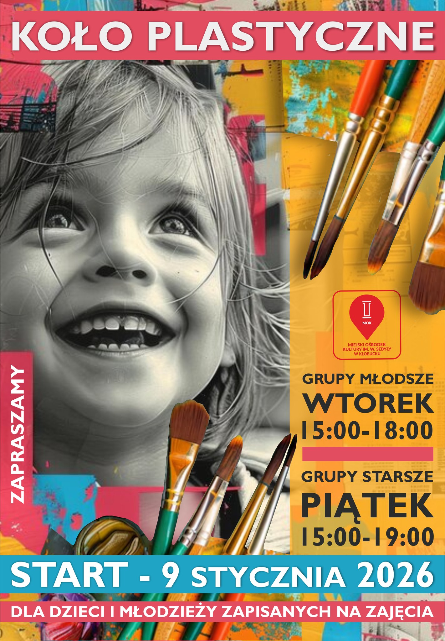 Nowy rok w Miejskim Ośrodku Kultury w Kłobucku zapowiada się wyjątkowo twórczo. Już 9 stycznia 2026 roku rozpocznie działalność Koło Plastyczne, skierowane do dzieci i młodzieży zapisanych na zajęcia. To propozycja dla tych, którzy chcą rozwijać swoje artystyczne pasje, uczyć się poprzez działanie i spędzać czas w inspirującym otoczeniu.
