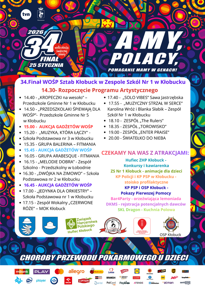 Już 25 stycznia Kłobuck po raz 34. włączy się w Wielką Orkiestrę Świątecznej Pomocy. Tegoroczny finał pod hasłem „A my, Polacy! Pomaganie mamy w genach” odbędzie się w Zespole Szkół nr 1 i zapowiada się niezwykle barwnie oraz emocjonująco.
