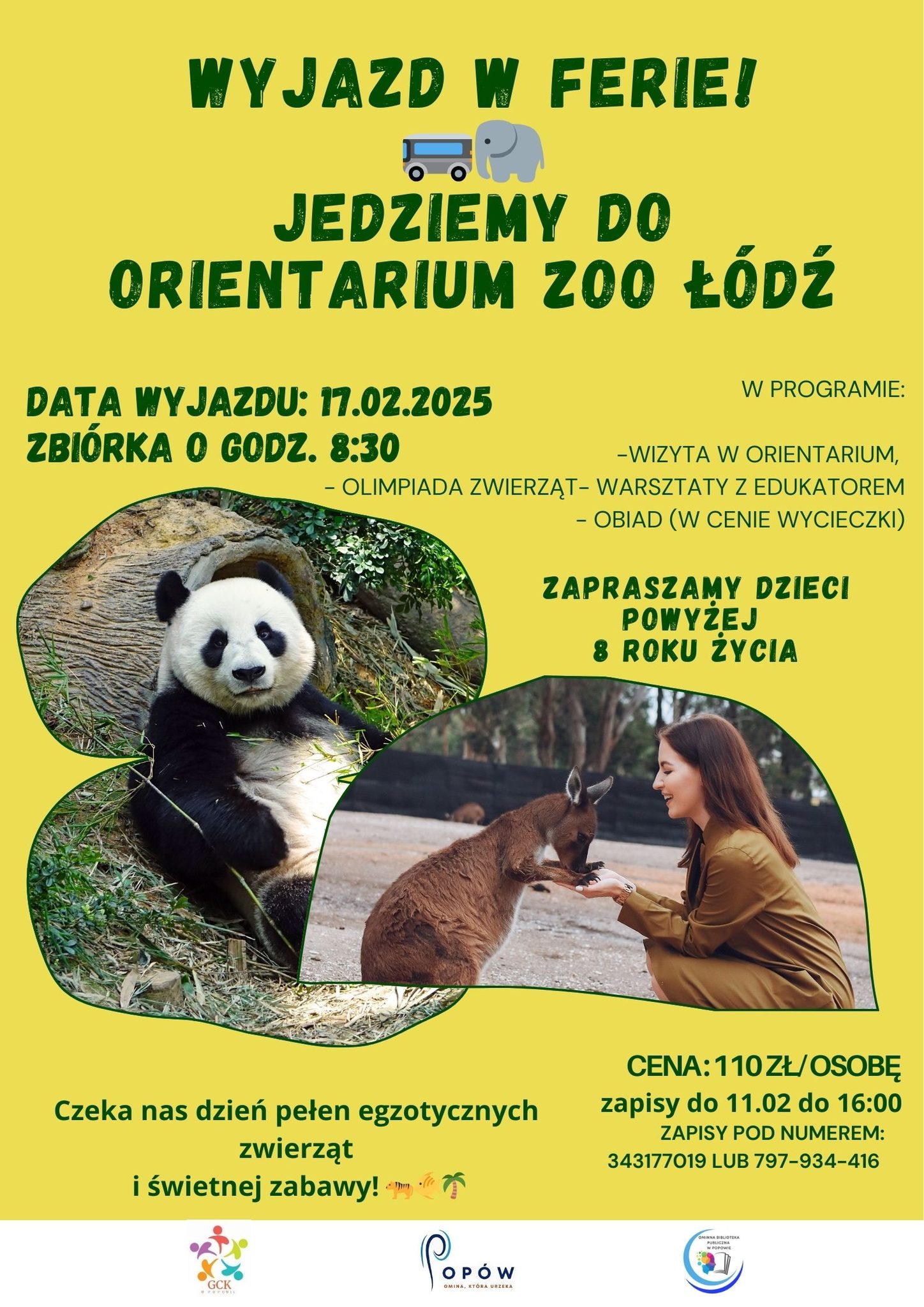 Wtorek upłynie pod znakiem odkrywania świata. Uczestnicy ferii wezmą udział w wyjeździe do Orientarium w Łodzi, gdzie zaplanowano warsztaty z edukatorem oraz spotkanie ze zwierzętami i opowieści o ich naturalnych środowiskach. To propozycja łącząca naukę z bezpośrednim doświadczeniem i obserwacją przyrody.