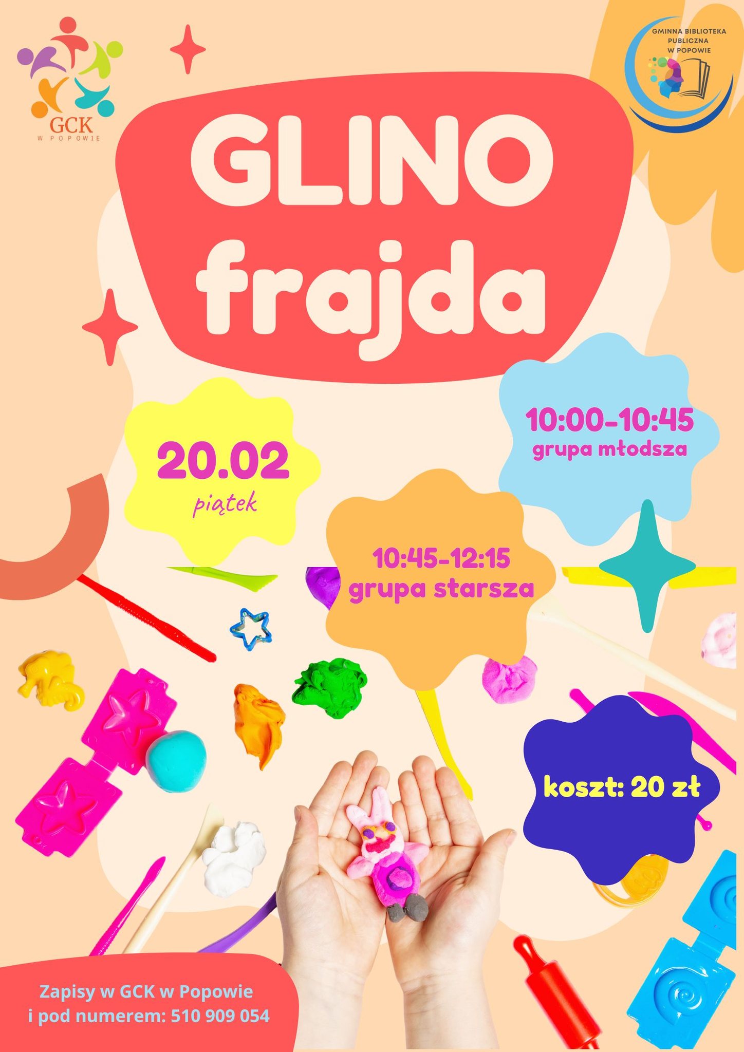 Na zakończenie ferii, w piątek 20 lutego, organizatorzy zapraszają na „Glino-frajdę” – warsztaty tworzenia z gliny. To propozycja dla tych, którzy lubią pracę manualną i chcą spróbować swoich sił w modelowaniu oraz twórczym eksperymentowaniu z materiałem.