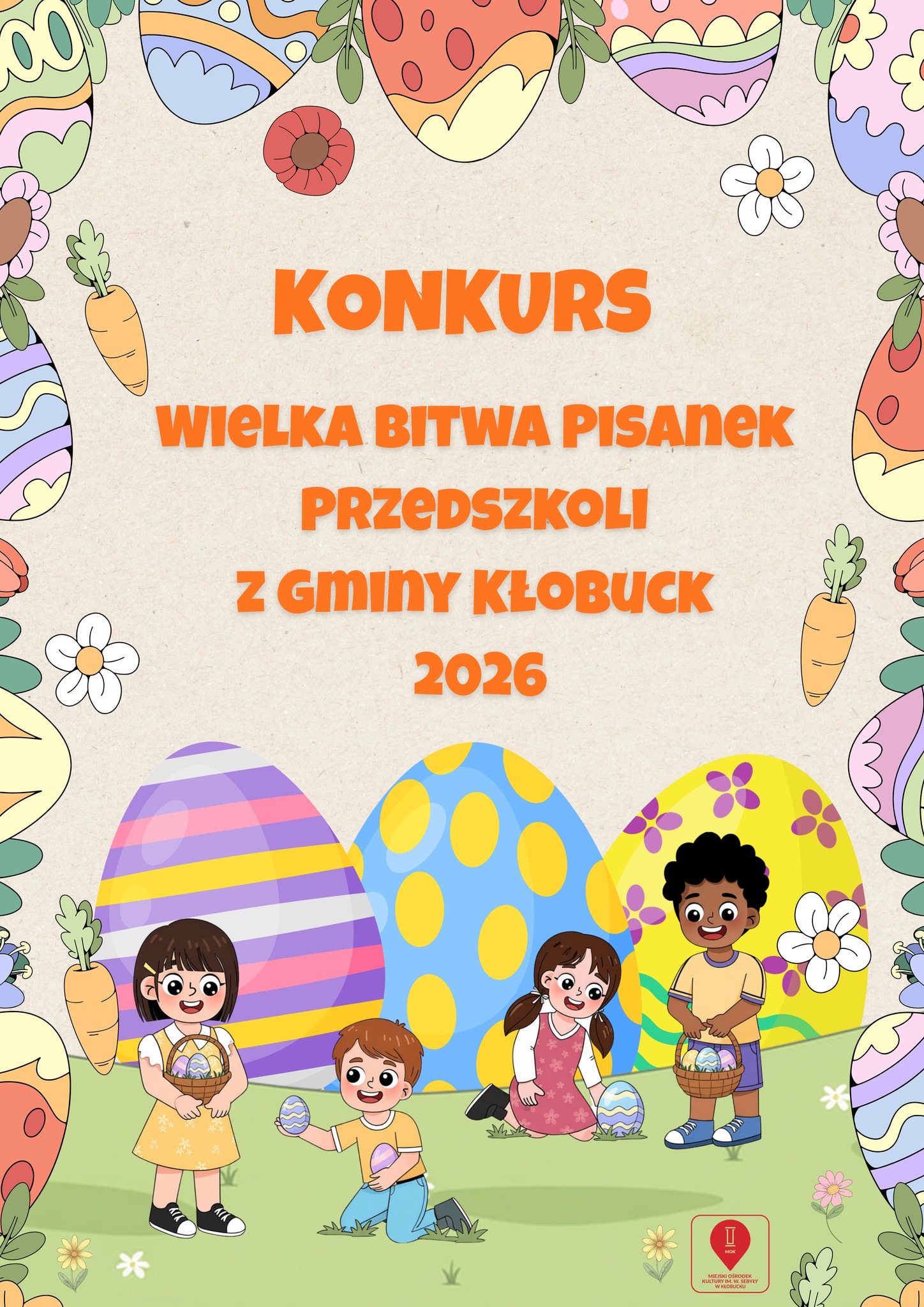 Kłobuck szykuje się na barwną, wiosenną rywalizację. Miejski Ośrodek Kultury im. Władysława Sebyły zaprasza wszystkie przedszkola z terenu gminy do udziału w wyjątkowym konkursie artystycznym – Wielkiej Bitwie Pisanek 2026.