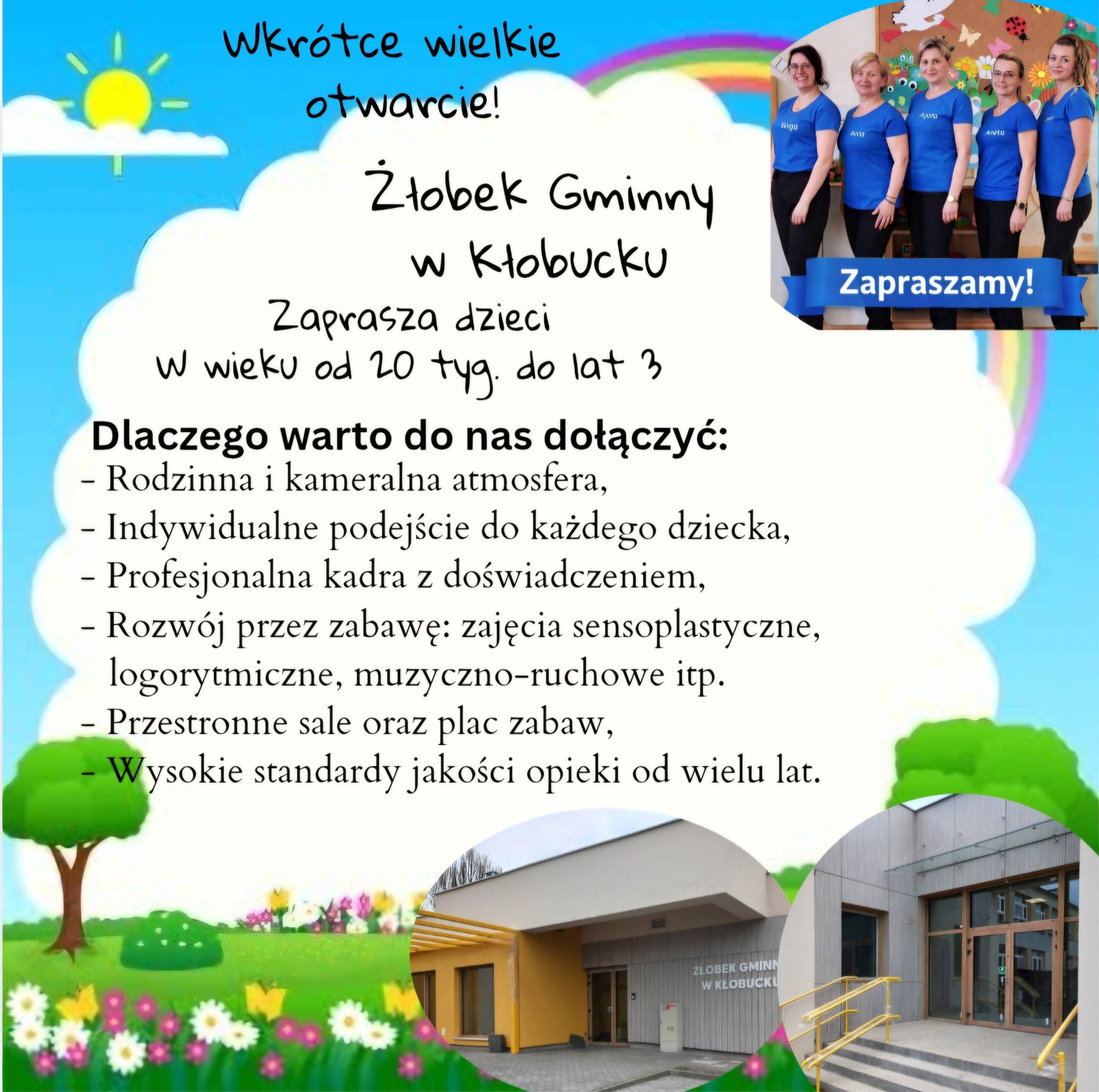 Już wkrótce rodzice z gminy Kłobuck będą mogli zapoznać się ze szczegółami naboru do Żłobka Gminnego w Kłobucku, który od 1 września 2026 roku rozpocznie działalność w nowej lokalizacji przy ul. gen. Rómmla. Przeprowadzka do nowoczesnej siedziby ma być ważnym krokiem w dalszym rozwoju placówki i podniesieniu komfortu opieki nad najmłodszymi dziećmi.
