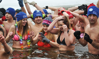 Po raz trzeci amatorzy wchodzenia zimą do zimnej wody mieli swe święto nad kłobuckim zalewem na Zakrzewie....